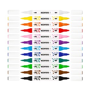 nekonečné možnosti kreativního tvoření s akrylovými popisovači Kores, které kombinují štětcový a kónický hrot, jsou ideální pro kreslení, psaní i práci s jemnými detaily, připravený k použití ihned, bez protřepávání, syté, intenzivní a krycí barvy, ideální pro světlé i tmavé povrchy, plynulý tok inkoustu, skvělý pro kreativní tvoření, vhodný pro dospělé i pro děti, netoxický, na vodní bázi, rychleschnoucí, vhodný na různé povrchy: kamínky, sklo, dřevo, papír, karton, plátno, plast, textil, keramika, porcelán