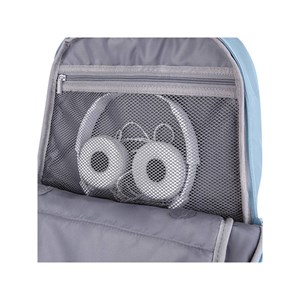 rozměry: 43×29×14 cm, materiál: 100 % polyester, barva: modrý, 5 kapes na zip, vodě odpudivý, možnost připevnění k troleji kufru, decentní logo v barvě batohu