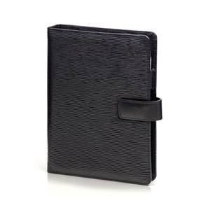luxusní kroužkový diář ADK Rondo v černé barvě s týdenním plánováním, desky jsou šité ručně v České republice z kvalitní kůže s vroubkovaným reliéfem, ušito v ČR, pohodlné a rychlé zavírání díky magnetické zápince, tenčí „slim“ provedení s jednoduchým vnitřním uspořádáním, diář obsahuje týdenní plánování, poznámkové listy, kuličkovou tužku ADK a pravítko. Rozměry desek A6: 18 x 13 x 3 cm, náplně: 16 x 10,5 cm