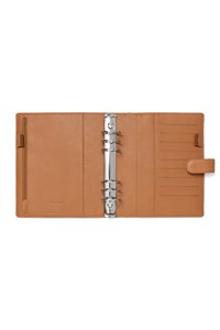 HLAVNÍ PŘEDNOSTI: jemná full grain kůže, měkké desky, zapínání na pásek, větší kapacita kroužků, poutko na pero, náplň Minimal, papír vhodný pro plnicí pera 80 g/m2, speciální dárková krabička