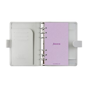 diář Saffiano osobní, modrá barva, jednoduchý a sofistikovaný design, desky z imitace kůže s jemnou strukturou a dvojtónovým efektem, zavírání na pásek s patentem, poutko na pero, náplň Classic, papír vhodný pro plnicí pera 80 g/m², nedatovaný roční plánovač, úvodní stránka, rozřazovače, linkované, čisté a tečkované papíry, kontakty, seznam úkolů, barevné linkované papíry, pravítko / záložka, levá strana: 3 kapsy na karty, 1 větší kapsa, elastické poutko na pero, pravá strana: kapsa na poznámkový blok, kroužková mechanika 23 mm, výška 188 mm, šířka 135 mm, hloubka 35 mm