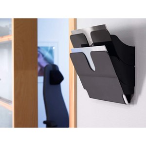 Nástěnný držák na prospekty se 2 přihrádkami na informace ve formátu A4 na šířku