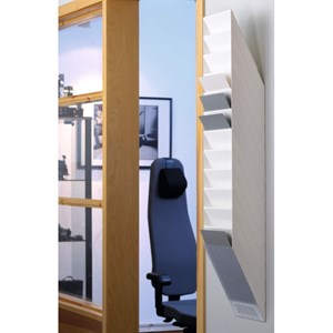 nástěnný zásobník na A4 prospekty řady FLEXIBOXX v moderním designu pro zobrazení a prezentaci informací, obsahuje 12 oddílů na prospekty A4+ na výšku, rozměry 1115 x 240 x 135 mm (v x š x h), obsah kapes cca 200 listů formátu A6