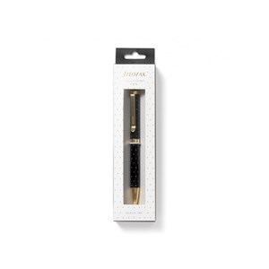 dělejte si poznámky stylově s tímto kuličkovým perem z kolekce Moonlight, pero má krásné potištěné kovové tělo, otočný mechanismus a černý inkoust, kompatibilní se všemi standardními náplněmi do kuličkových per Cross®