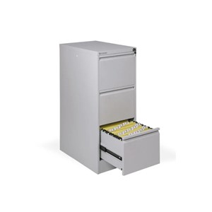 kartotéka 3 zásuvková, pro závěsné pořadače formátu A4, centrální uzamykání všech zásuvek, plný 100% výsuv zásuvek, přesné teleskopické vedení, kuličková ložiska pro lehký a tichý chod, zařízení proti převážení kartotéky, zábrany proti vypadnutí zásuvek, nosnost jedné zásuvky 40 kg, šířka 41,6 cm, výška 101,5 cm, hloubka 62 cm