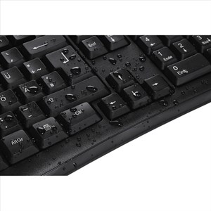 spolehlivá robustní klávesnice se standardním rozložením kláves pro všechny PC, voděodolné provedení s odtokovými otvory, tlačítka pro rychlý přístup k multimediálním funkcím, nastavitelná výška klávesnice, pogumované nožičky pro lepší stabilitu, CZ a SK layout, rozměry 43,7 x 17,1 x 2,2 cm