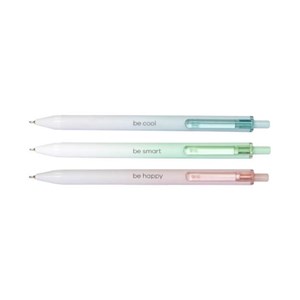 tenké kuličkové pero v pastelových barvách s potiskem be happy, be smart, be cool, odlehčené plastové tělo se sametově hladkým povrchem, šířka stopy 0,5 mm, náplň easy ink – inkoust s nízkou viskozitou pro pohodlnější a plynulejší psaní, náplň Easy Ink - modrá (obj.č.240801)
