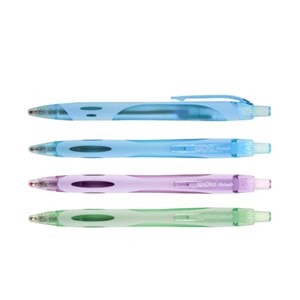 kuličkové pera, jehož tělo obsahuje 68 % recyklovaného plastu, kombinace matné a průhledné barvy těla umožňuje lepší kontrolu náplně, speciální náplň Easy Ink – inkoust s nízkou viskozitou pro pohodlnější a plynulejší psaní, šířka stopy 0,5 mm, tenký hrot s modrou náplní Needle Tip (obj.číslo: 240801), mix pastelových barev