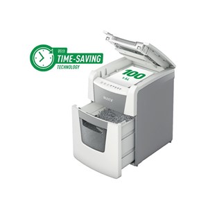 Funkce automatického podávání pro 100 listů A4 (80 g/m²), otvor pro manuální plnění až po 8 listech, vyprazdňovací funkce, infračervený senzor plného koše a výstraha při 80 % naplnění, ultra tichý provoz, technologie proti zaseknutí papíru pro nepřetržité skartování, nepřetržitý chod po dobu 20 minut, ECO režim spánku se aktivuje po 3 minutách nečinnosti, bezpečnostní křížový řez DIN P4 (4 × 30 mm), 34 l vyjímatelný koš, dotekové ovládání, skartuje také kreditní karty, kancelářské sponky a drátky sešívaček, záruka 2+1 rok (i na řezací mechanismus), max. šířka vstupu: 220 mm, rozměry (š × v × h): 365 × 530 × 430, váha: 12 kg.