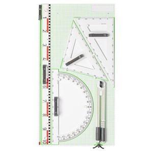 kompletní řada plastového tabulového příslušenství německé značky Wissner, pravítka a úhloměry jsou vybaveny rukojetí pro snadnější manipulaci, vybrat si můžete z jednotlivých produktů nebo ucelené sady, bílé provedení je s magnety na magnetické tabule, materiál RE-Plastic®, sada obsahuje: pravítko 100 cm, úhloměr 50 cm, pravoúhlý trojúhelník 45/90° 60 cm, trojúhelník 30/60° 60 cm, kružítko délky 45 cm s přísavkami, univerzální úchytka na křídy, popisovače do průměru 16 mm, ukazovátko 100 cm, rozměr desky na zavěšení 102 x 55 x 4 cm
