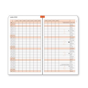 Měsíční diář je umístěn v samostatných deskách spolu s A-Z adresářem A6, díky čemuž jej lze používat i samostatně. Rok je dělen na měsíce, dny a hodiny a každý měsíc je zobrazen na jedné dvoustraně. Tento formulář slouží především pro aktivity a termíny ve vzdálenější budoucnosti než jeden týden. Sešítek se 13ti listy, na boční straně listů záložky s názvy měsíců pro snadnější orientaci, rozměry: 15,5 x 8,5 cm.