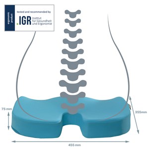 stylový a ergonomicky navržený podsedák pro maximální pohodlí při sezení na jakékoli židli, podporuje zdravé držení těla, zlepšuje krevní oběh a snižuje tlak na páteř tím, že minimalizuje kontakt mezi kostrčí a sedákem židle, pomáhá snižovat nepohodlí, únavu a ztuhlost, které mohou být důsledkem dlouhodobého sezení a zdravotních potíží, jako je ischias, ideální pro použití doma, v kanceláři nebo v autě jako plně mobilní řešení zdravého sezení, potah sedáku lze sejmout a z hygienických důvodů prát v ruce, rozměry 355 x 75 x 455 mm