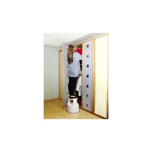 posuvné stupátko vyrobené z recyklovatelného polypropylenu, lehce posuvné díky pojezdovým kolečkům, která se při zatížení nad 5 kg zasunou, výška 43 cm, spodní průměr 44 cm, horní průměr 39 cm, nosnost 150 kg, hmotnost 3,7 kg