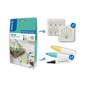 Akrylový popisovač Pintor, který píše téměř na všechny povrchy. Sada v dárkovém sáčku obsahuje: 1 x Pintor (hrot Fine): černá, 2x Pintor (hrot Broad) pastelově zelená, pastelově žlutá + 1 x povlak na polštář. Vysoce odolný vláknový hrot, inkoust na vodní bázi s akrylovými složkami a vysokým obsahem pigmentů, vodě a světlu odolný. Vysoká krycí schopnost, mix barev. Permanentní v závislosti na povrchu a dalším ošetření stopy (např. ošetření bezbarvým lakem, přežehlení, fixace vysokou teplotou atd.). Neskladujte hrotem dolů. Průměr hrotu: 2,9 mm; šířka stopy: 1,5 mm. Průměr hrotu: 8,0 mm; šířka stopy: 8,0 mm. Rozměr balení 155 x 40 x 265 mm (š x hl x v).