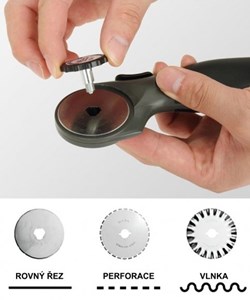 Ergonomické madlo s výměnným rotačním nožem v ceně nástroje.