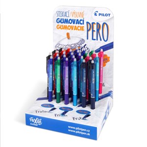 přepisovatelný roller s tekutou náplní a stiskacím mechanismem, nový high tech synergy hrot s rotující kuličkou pro úhlednou a tenkou linku, ergonomické tělo, náplň v barvě zakončení těla, sametově jemné psaní, šíře stopy 0,25 mm, náhradní náplň: Frixion Point 0,5 mm