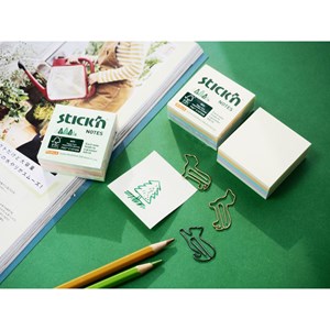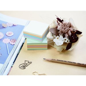 samolepicí bločky v mixu pastelových barev vyrobené z papíru, který pochází z ekologicky obhospodařovaných lesů, certifikovaný papír šetrný k přírodě využívá lepidlo na vodní bázi, lístky jdou snadno nalepit a odlepit, přesto skvěle drží, nezanechávají stopy po lepidle