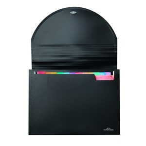 organizér na dokumenty s gumou a rejsříkem, tento elegantní polypropylenový organizér v černé barvě má 25 kapes vhodných pro formát A4 a menší dokumenty, včetně rozlišovacích štítků pro snadnou identifikaci obsahu, formát A4, uzavírá se pomocí elastické gumy na knoflík