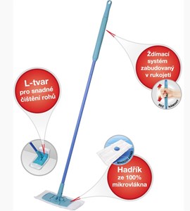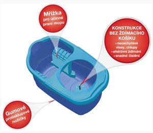 Spontex Mop Express System plus přichází s vylepšenou technologií ždímání, stačí mop nasadit na trn a pohybem rukojeti aktivovat odstředivý 360stupňový mechanismus, tento způsob ždímání mop také zbaví veškerých nečistot jako chlupy a vlasy, které se na něm během úklidu zachytí, návlek mopu je vyroben z kvalitního mikrovlákna, proto je Spontex Express Systém účinný i bez použití čistících prostředků, stačí čistá voda a poradí si se všemi typy podlah, tvar hlavice zase zajistí, že mu neunikne ani špína v rozích a podél zdí, sada obsahuje: 1× kbelík, 1× hlava mopu, 1× náhrada (potah) se stírací plochou 33 x 14 cm, 1x tyč k mopu (délka 130 cm)