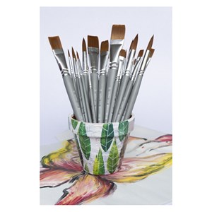 Kvalitní štětec s jemným syntetickým pružným vlasem, který usnadňuje roztírání barev a výborně drží tvar. Vyniká dlouhou životností - neztrácí vlákna, odolnější vůči poškození ředidly. Snadná údržba, neabsorbuje pigment a mastnotu. Ideální pro alergiky. Vhodný pro školáky a hobby tvoření. Určen pro malování akvarelovými barvami a pro vymalování detailů. Dřevěná šedá lakovaná násadka. Špička chráněna plastovým krytem. Balení: krabička 12 ks, vnitřní ochranný sáček.