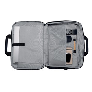 pouzdro kensington EQ z polyesterové příze PET vyrobené z 23 plastových lahví 250 ml, lehká a moderní brašna na notebook do 16", polstrovaná přihrádka, přední kapsa na zip a vnitřní kapsy na příslušenství, rozměr: 60 × 38 × 117 mm