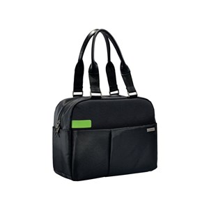 kvalitní, lehká a kompaktní dámská taška s dvěma hlavními a jednou menší přední kapsou, výrazný a elegantní design doplňují kvalitní zipy a stylové matně kovové přezky, černý povrch s kontrastním zeleným vnitřkem, pro snazší hledání předmětů, taška nabízí místo pro všechny Vaše mobilní zařízení, 13,3" notebook a dokumenty do formátu A4, lze pohodlně nosit díky polstrovaným rukojetím z pravé kůže nebo nastavitelnému ramennímu popruhu, případně upevnit na madlo pojízdného kufru, samostatné vyjímatelné pouzdro pro napájecí adaptér a další kabely, skrytá kapsa na telefon na zadní straně pro snadné použití telefonu se sluchátky, 19 kapes, včetně přední kapsy pro mini tablet nebo čtečku knih, integrovaný hadřík na displej, klíčenka, polstrovaná kapsa na tablet a notebook s měkkým fleecem pro ochranu obrazovky a povrchu zařízení, rozměry: 75 x 270 x 370 mm