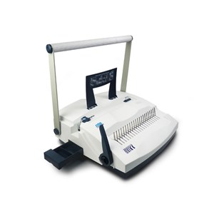 elegantní a uživatelsky komfortní stroj pro vázání dokumentů do plastových hřbetů a euroděrování dokumentů, je vybaven oddělenými pákami pro děrování a roztažení kroužku, měřidlem velikosti kroužku, nastavitelnou hloubkou okraje a postranního dorazu, díky nápaditému provedení děrovací mechaniky lze vázat i nestandardní formáty do DIN A3, najednou prosekne až 25 listů, sváže 500 listů a jeho konstrukce umožňuje i náročný provoz, doplňková šachta pro děrování dokumentů čtyřmi kulatými výseky o průměru 6 mm a roztečí 80 mm, hmotnost 12,5 kg, rozměr: 440 x 480 x 430