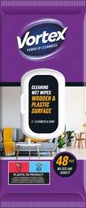 VORTEX vlhčené čistící ubrousky na dřevo a nábytek. Speciálně vyvinutý zvlhčující roztok ubrousků je ideální na utírání dřevěných ploch, plastu a kovu. Dodává výjimečnou čistotu a lesk povrchům nábytku. Poskytuje pohodlí a spolehlivost při udržování čistoty nábytku. Přírodní, pevný materiál ubrousků viskóza, svěží vůně a plastový uzávěr proti vysychání. Ideální pro rychlé a efektivní čištění v domácnosti. Velikost ubrousku 19x18,5cm, 48 ks.