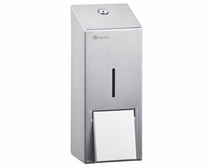 mýdlo je dávkované ve formě jemné, delikátní pěny, vyrobeno z matné nerezové oceli, boční spoje svařené a broušené, neviditelné panty, uzamykatelné, zajištěno odolným ocelovým cylindrickým zámkem na klíč (zámek v jedné rovině s povrchem zařízení), 10 let záruka, rozměr: 26 cm x 10,4 cm x 10,2 cm
