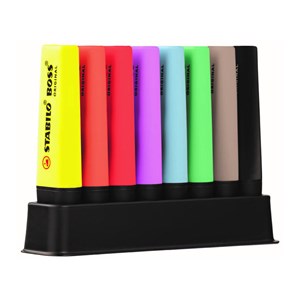 Zvýrazňovače využijete nejen v každé kanceláři, ale poslouží i dětem ve škole. Jestliže si rádi označujete důležité věci v textu, zvýrazňovač STABILO bude pro vás ten pravý. Černá, červená, hnědá, modrá, oranžová, růžová, zelená a žlutá barva zvýrazňovače se nerozmazává, takže dokument můžete bez obav vložit do kopírky. Zkosený tvar hrotu umožní kreslit silné a slabé linky. Je-li řeč o velikosti stopy, tak ta u zvýrazňovače STABILO dosahuje šířky 5 mm. V balení naleznete 8 ks zvýrazňovačů.